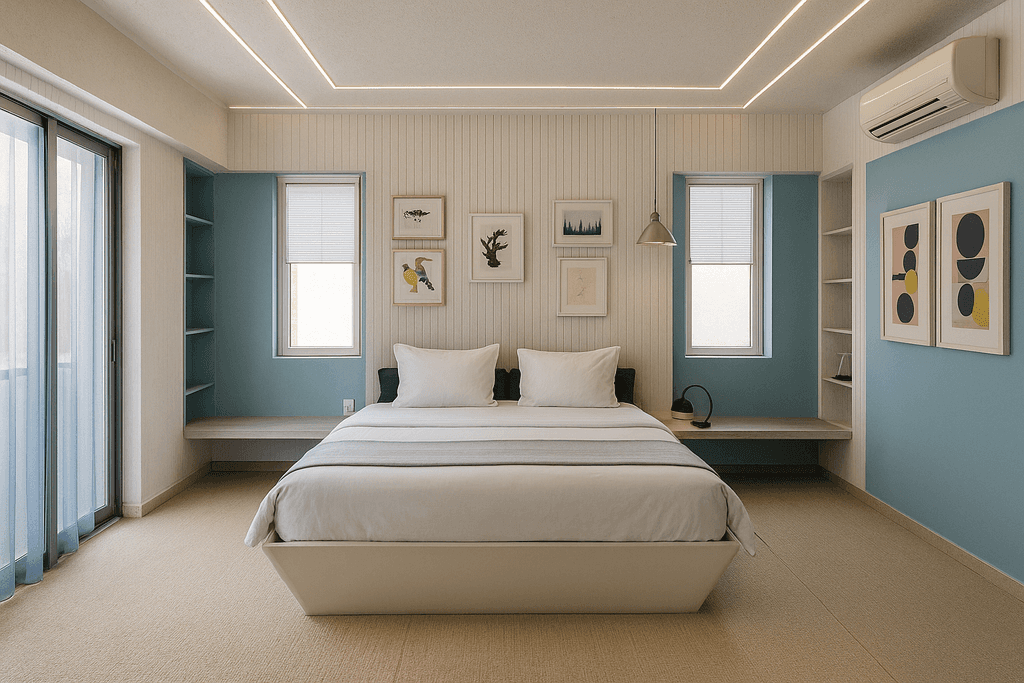 This residence is a celebration of modern minimalism harmonized with bold artistic expressions. Each space is thoughtfully curated with clean lines, earthy textures, and a neutral palette, allowing curated accents and artwork to shine. Warm wood tones and tailored lighting bring depth and sophistication, while layered textiles and bespoke furniture pieces ensure comfort without compromising style. From serene bedrooms to dynamic feature walls, the home strikes a perfect balance between functionality and visual storytelling—crafted to reflect contemporary living with timeless appeal..